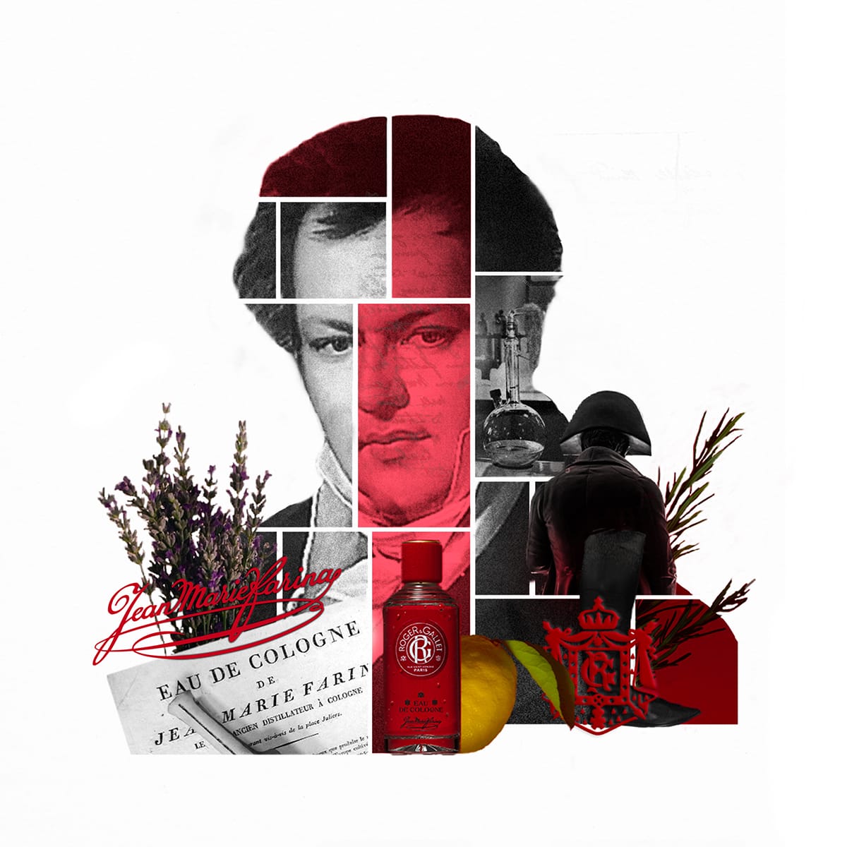 Il y a quelque chose ici d'intemporel, d'éternel, d'émouvant. L'Eau de Cologne Jean Marie Farina offre des retrouvailles avec soi-même, nous plonge dans une sensation de bien-être délicieuse et vivifiante dont on ne saurait jamais se lasser. En 1806, Jean Marie Farina créé un parfum d'une fraicheur méditerranéenne inédite, associant pour la première fois la fraicheur éclatante d'essences d'agrumes à l'élégance des aromates. Un accord gardé secret qui en un instant, va démoder tous les autres. Le petit-grain, la lavande, le romarin, le thym, enrichis d’huiles essentielles de citron, donnent à l'Eau de Cologne Jean Marie Farina une fraicheur singulière dont on a envie de se gorger. Son nouveau flacon paré d'or et d'un rouge vivifiant arbore la traditionnelle signature de Jean Marie Farina.