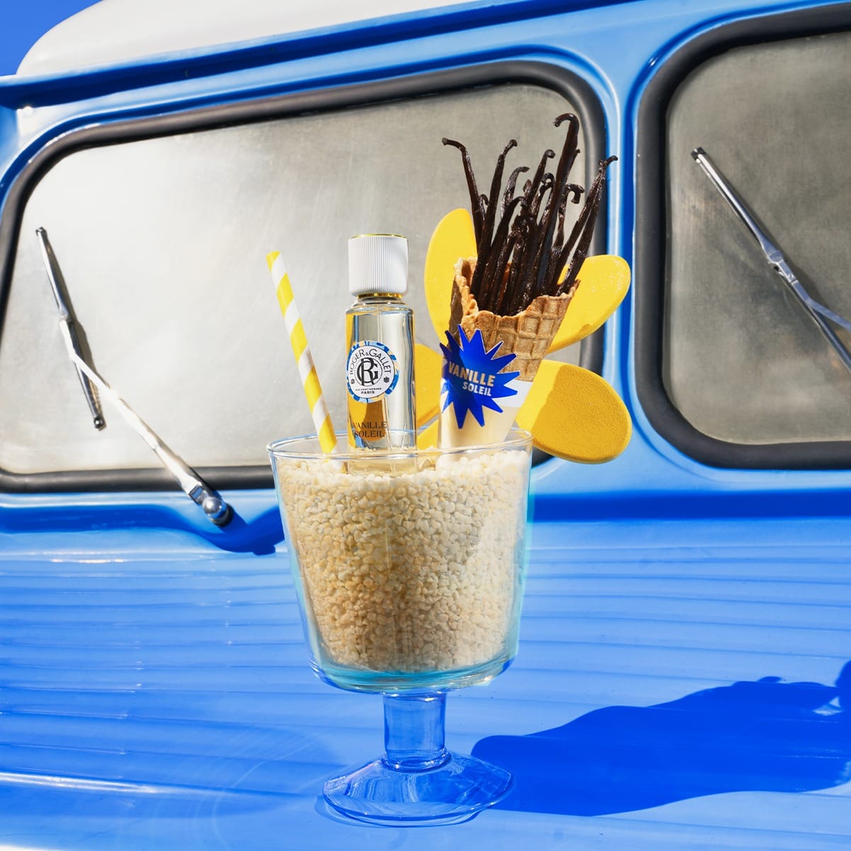 Imaginée par la Maître Parfumeur Karine Dubreuil, Vanille Soleil fait l’effet d’un tube de l’été sur lequel on aurait envie de danser toute l’année. Illuminée par le jasmin et l’ylang-ylang, la vanille se fait grisante de légèreté. Des notes salées rappellent une brise marine en Méditerranée. Réhaussée par la fève Tonka et par des notes ambrées chaleureuses et musquées, la vanille revient en fond, envoutante comme un refrain que l’on n’oublie pas. Un parfum qui revisite la vanille loin des clichés trop sensuels ou sucrés, pour un sillage addictif à adopter toute l’année.